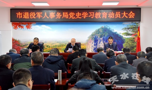 3月19日,天水市退役军人事务局召开党史学习教育动员大会。深入学习贯彻习近平总书记在党史学习教育动员大会上的重要讲话,全面落实省、市动员大会精神,组织学习局系统开展党史学习教育活动方案,局党组书记、局长杨胜利作动员讲话。
