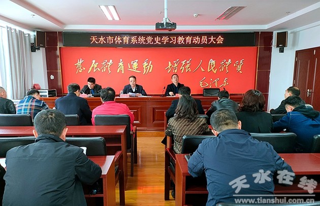 会议传达学习了习近平总书记在党史学习教育动员大会上重要讲话精神和省市委党史学习教育动员大会精神,宣读了《中共天水市体育局党组关于开展党史学习教育的实施方案》。