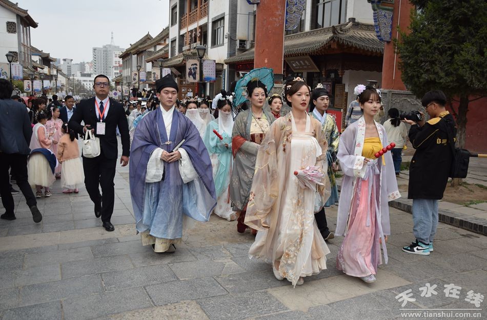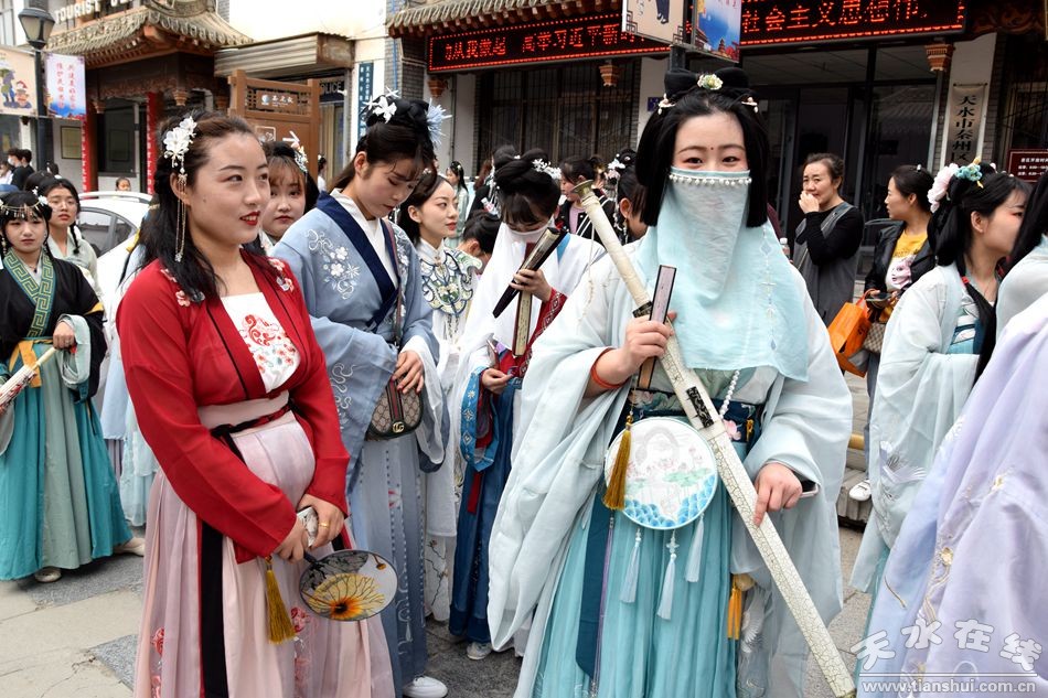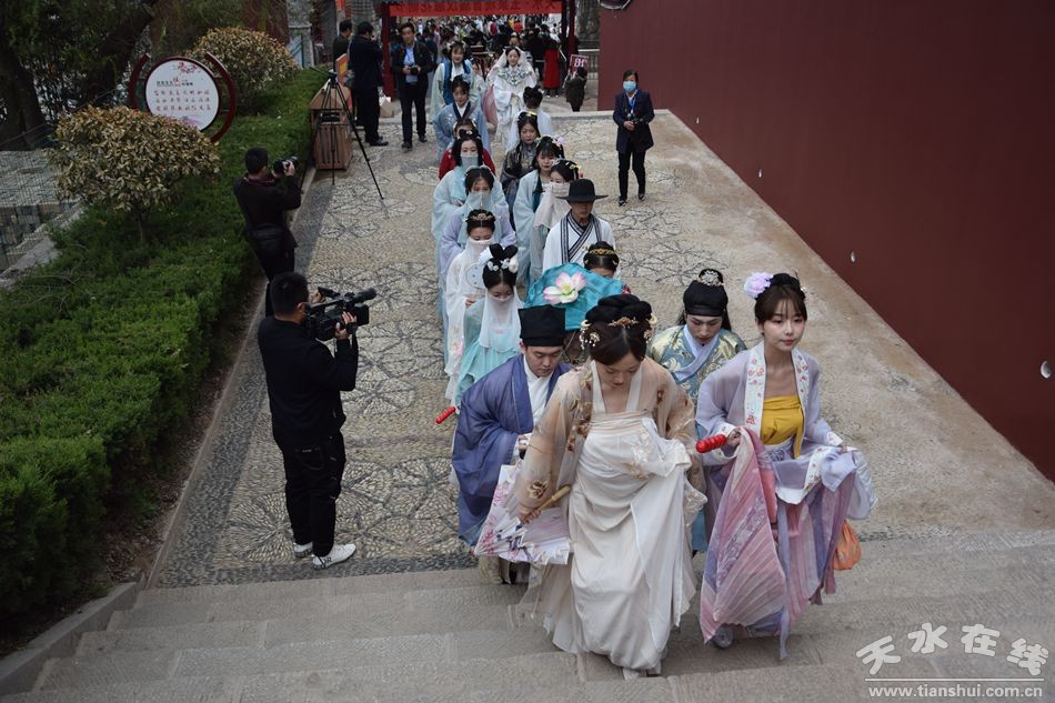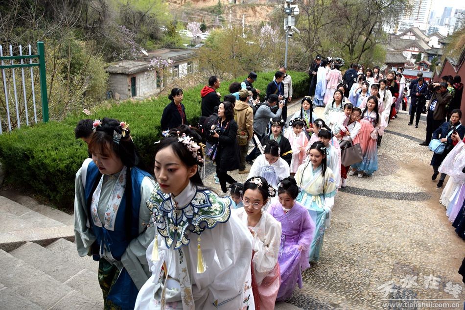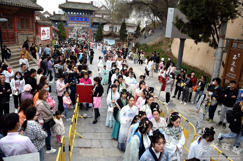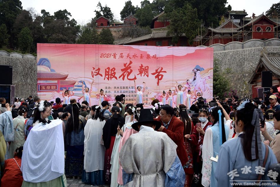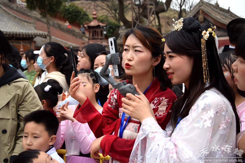 花朝节上 ,我市传统文化爱好者和汉服爱好者,以花为媒,以节会友,向四方来宾展示了天水之美、秦州之美、玉泉观之美、汉服之美和传统文化之美 。 花神袅袅,美女如云,春暖花开 ,美伦美奂,这是一场文化的盛宴,同时也是一场视觉的盛宴 ,古典与时尚,激情与靓丽的交融使初春的玉泉观也成了众多摄影爱好者逐梦的天堂。