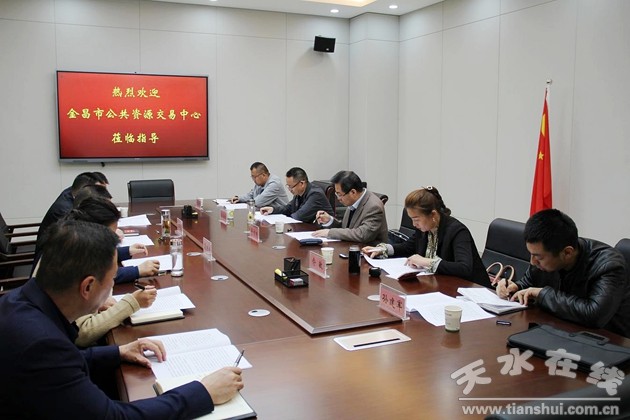 4月7日,金昌市公共资源交易中心党组成员、副主任景寰明一行来天水市公共资源交易中心考察交流。考察组实地参观了中心办公场地建设、交易见证服务系统建设、和全流程电子化建设,并现场询问了部分招标代理机构及评标专家对公共资源交易平台整合共享的意见建议。
