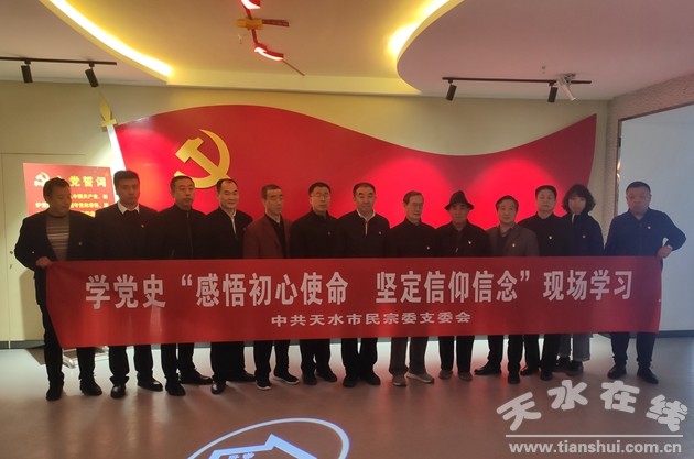 在现场党课教育中,市民宗委党组书记傅小春强调,一要深入学习领会习近平总书记在党史学习教育动员大会上重要讲话精神,真正做到“学史明理、学史增信、学史崇德、学史力行、学党史、悟思想、办实事、开新局”,在回望百年党史中不断滋养初心使命,传承党的光荣传统和红色基因,增强继往开来走好新时代长征路的自觉性、坚定性,不断铸牢中华民族共同体意识,共绘天水市民族团结“同心圆”,矢志不渝为党的事业努力奋斗,竭尽全力创建全国民族团结进步示范市。二要将开展党史学习教育与推动重点工作落实结合起来,与铸牢中华民族共同体意识结合起来,把学习成效转化为民族团结进步创建的强大动力,将“民族团结进步史”学习纳入党史学习教育,引导全体党员干部对民族团结进步事业进行历史回顾,加强对典型事迹的挖掘和学习,将我市张家川县沈遐熙革命纪念馆打造成民族团结进步示范教育基地,使党的优良传统与作风内化为党员干部的自觉行动。三要将党史学习教育与天水民族团结进步好故事结合起来。结合我市正在开展的铸牢中华民族共同体意识好故事有奖征文活动,收集整理我市各族群众在党史、新中国史、改革开放史、社会主义发展史中作出的杰出贡献,结合中国共产党历史上的重点事件、重大会议和重要人物,开展大宣讲活动,将党史故事和心得感悟结合起来,既要有理论知识的深刻认识,也要有各种历史故事的精彩穿插,达到“以讲促学、以讲促干”的目的,讲好民族团结的天水故事,深化党史学习教育。四要把“为民办实事”作为党史学习教育的着力点和落脚点,亮出办实事清单,建立台账,明确责任单位、责任人和完成时限。积极协调争取资金,帮助张家川县开创现代化建设和高质量发展新局面。五要与即将开始的天水市第18个民族团结进步宣传月活动结合起来,将党史学习教育作为宣讲重点,以“干部、青少年、知识分子、信教群众”为主要对象,着力发挥“八进”主渠道、主阵地作用,把学习党史、新中国史、改革开放史、社会主义发展史及党的民族宗教理论政策作为民族团结进步宣传教育的核心内容,在全市深入开展“十个一批”学习宣传活动和以“学好党史必修课,铸牢中华民族共同体意识”为主题的研学交流活动,增强各族群众对伟大祖国、中华民族、中华文化、中国共产党、中国特色社会主义的认同。六要用党史教育引导少数民族代表人士和广大信教群众听党话、感党恩、跟党走,要从这些历史中让他们认识到,纵然有普度众生的慈悲心肠,纵使怀抗暴济世的雄心壮志,如果没有中国共产党的领导,就不可能走向成功;只有中国共产党才能真正团结中国56个民族的人民群众,也只有中国共产党能够领导中国56个民族铸牢中华民族共同体意识、实现伟大复兴的中国梦。七要把从党史学习教育中获得的精神力量转化为创建全国民族团结进步示范市的强大动能。按照天水市创建工作三年规划和《天水市创建全国民族团结进步示范市领导小组2021年工作要点》安排,我市创建工作已经到了最后冲刺的关键阶段,时间非常紧迫,任务非常艰巨,责任十分重大,大家一定要从党的百年历史中汲取精神力量,完成各自所担负的创建工作任务,对“十个一批”系列活动要建立工作台账,按照时间节点逐一抓好落实,全体人员要开足马力、全力以赴,加班加点,发扬敢于拼命的革命精神,为创建全国民族团结进步示范市作出应有贡献。