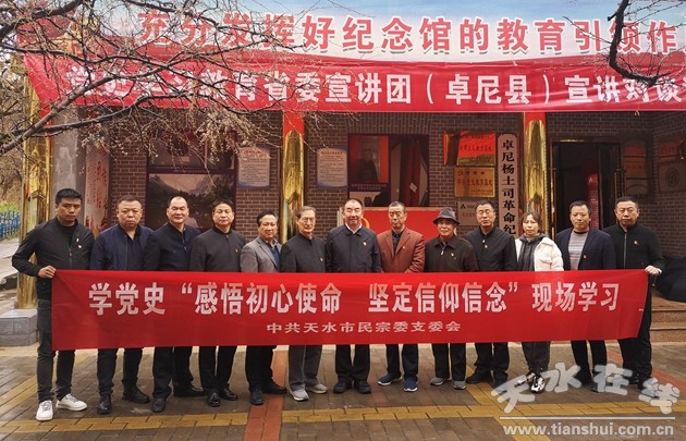 4月24日至25日,天水市民族宗教委以“感悟初心使命、坚定信仰信念”为主题,组织机关全体党员及部分退休老干部赴临夏回族自治州和政县肋巴佛革命纪念馆、甘南州卓尼县杨土司革命纪念馆,开展党史学习教育现场学习暨民族团结进步创建学习观摩活动。