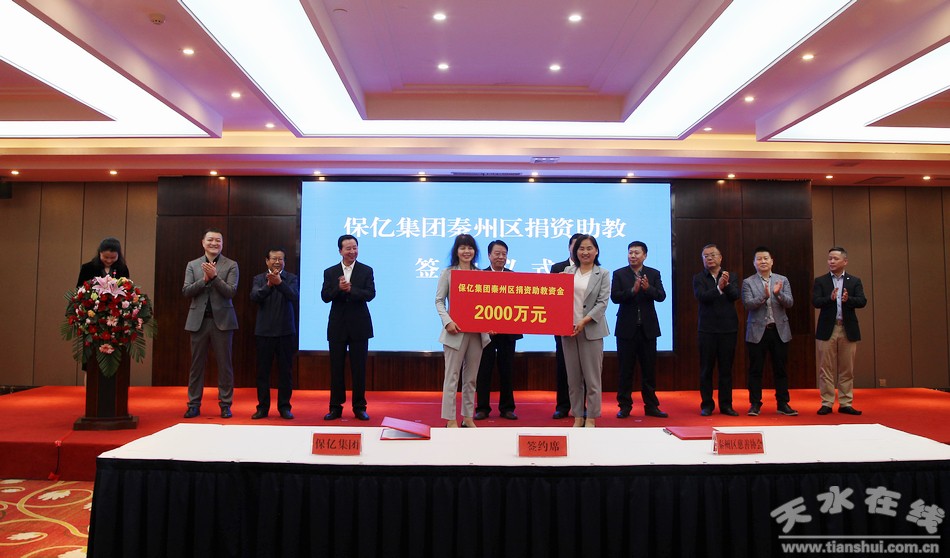 保亿集团是一家享有盛名的房地产开发企业,多年来积极响应党委政府关于民企回馈社会的号召,秉承“取自社会用之社会”的发展准则和“知善、行善”的公益理念,认真履行社会责任,持续助力公益事业发展。此次,保亿集团为秦州区教育事业捐赠2010万元,再次体现了保亿集团履行社会责任的强烈担当,投身教育事业的崇高美德。