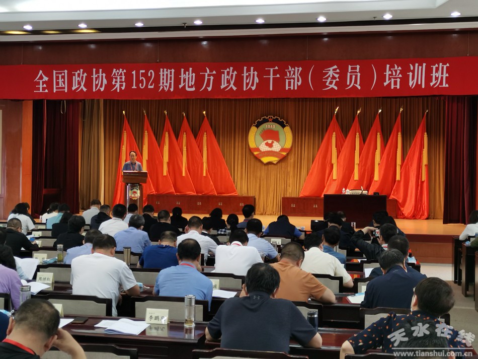 本次培训班是天水市政协成立以来首次组织常委会组成人员和县区政协负责同志到全国政协培训中心进行学习培训,市政协党组对这次培训班高度重视,召开党组会议作了专门研究部署,市政协党组书记、主席赵卫东就办好学习培训提出了明确要求。本次培训与全国政协第152期地方政协干部(委员)培训班一同进行,利用“人民政协讲坛”举办了讲座,邀请全国知名专家和教授针对提升政协委员履职能力及国际国内形势进行专题辅导。其中,全国政协办公厅研究室一级巡视员杨朝晖做了《加强和改进新形势下的反映社情民意信息工作》的报告、中国战略文化促进会常务副会长兼秘书长罗援将军介绍了《大疫过后的世界战略格局》、中央财经大学金融学院院长贺强做了《经济形势与财政货币政策应用》的报告、中共中央党史和文献研究院研究员辅导了《学习习近平总书记在党史学习动员大会上的重要讲话,把握党史学习教育重点》、十二届全国政协提案委员会委员蔡玲做了《参政议政学习与实践--在人民政协中成长》的报告、中国人民政协理论研究会原秘书长原冬平做了《认真贯彻中央对政协工作划时代的新要求》的报告、中国联通集团产品中心总经理张云勇做了《5G数字新基建促进双循环与科技创新》的报告。