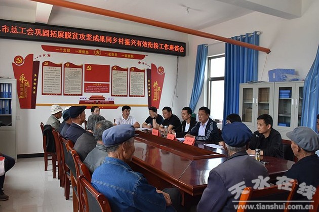 为将帮扶村巩固拓展脱贫攻坚成果同乡村振兴有效衔接,扎实开展党史学习教育“我为群众办实事”活动,5月28日,天水市总工会在甘谷礼辛镇河沟村召开脱贫攻坚成果同乡村振兴有效衔接工作座谈会。市总工会党组书记、常务副主席庞明全、市总工会副主席宋玉香、市总工会党组成员、副主席张景荣、礼辛镇党委副书记安永胜、河沟村两委班子、帮扶工作队,党员代表及市总工会相关部室负责人参加了座谈会。