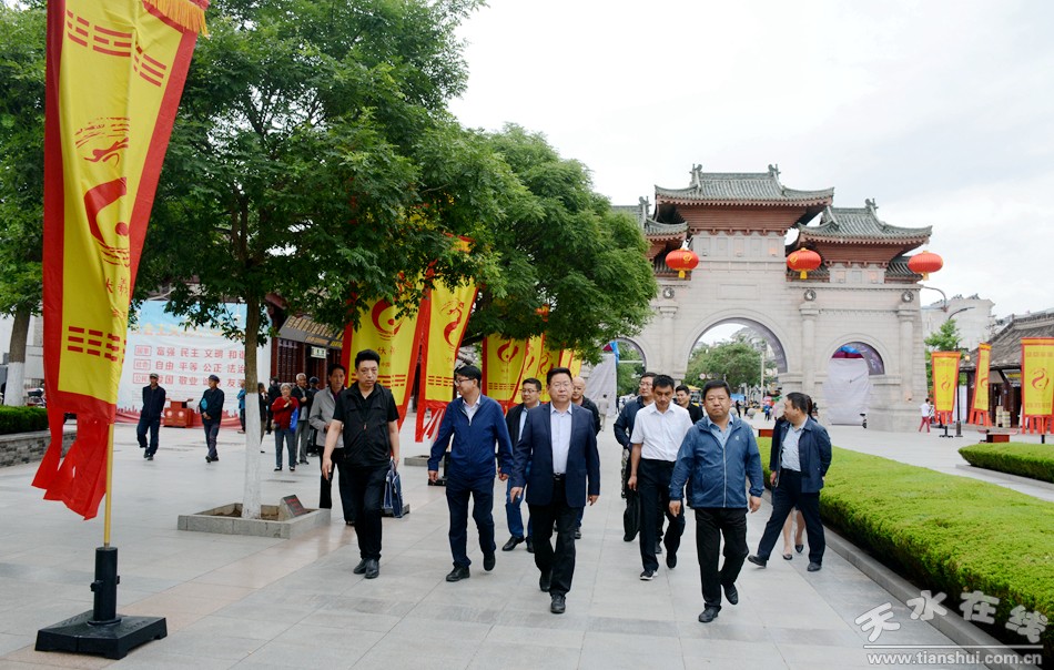 6月16日,天水市委常委、宣传部部长张建杰带领相关部门负责人,现场督查2021年公祭伏羲大典筹备情况。他强调,各相关部门和施工单位要高度重视,加强统筹协调,紧盯时间节点,精益求精,高质量做好公祭大典各项筹备工作。