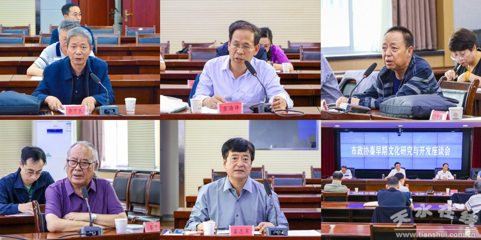 市政协常委李宁民认为,天水是秦文化的重要发源地,有众多的秦文化遗址、遗迹和遗物,研究开发秦文化要与发展我市文化旅游产业结合起来,充分展示秦文化遗存,使其在文化传承和文旅产业发展中发挥积极作用。市政协常委王若冰认为,要进一步准确定位秦文化,明确研究方向,依托天水秦文化资源,拓宽区域与宝鸡、礼县等地协同开发研究,多元化呈现秦文化,提升天水城市品位,促进秦文化研究开发和文旅产业深度融合发展。天水师院教授雍际春认为秦人在天水及周边发展壮大的过程,创造出了自己特有的秦文化和秦人精神,要充分挖掘秦文化内涵价值,传承秦人的开拓创新精神、自强不息精神、尚贤精神等,增强文化自信和中华民族的自豪感。李子伟、霍志军丶苏海洋等专家学者从不角度提出研究和开发天水秦早期文化的意义和具体措施,对推动研究开发发表了很好的意见建议。