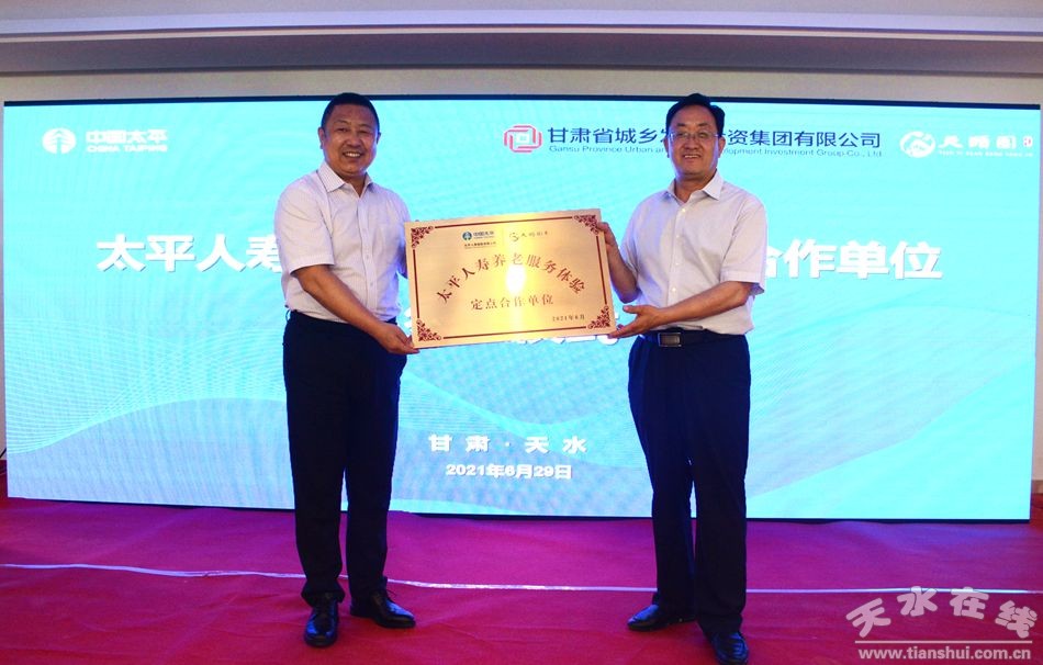 6月29日,天水麦积天颐园综合养老有限公司与太平人寿甘肃分公司正式签订合作协议,双方将依托天水天颐园康养居,在设立太平人寿西北地区首个养老服务体验点的基础上,共同打造在全省乃至西北地区具有标杆性的现代化、综合性康养社区,助力天水市在“十四五”期间形成多元化、互补协同发展的“金融+文旅+康养”产业链,提升天水市康养产业发展水平。
