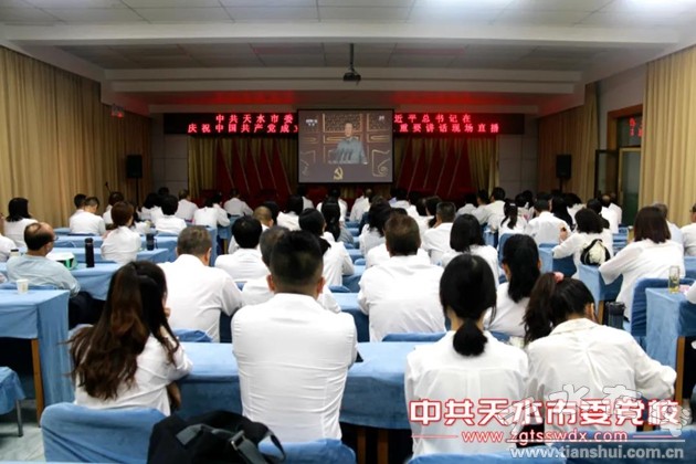 天水市委党校全体干部职工一起收听收看庆祝中国共产党成立100周年大会盛况直播,聆听习近平总书记发表的重要讲话,回顾党的百年光辉历程。