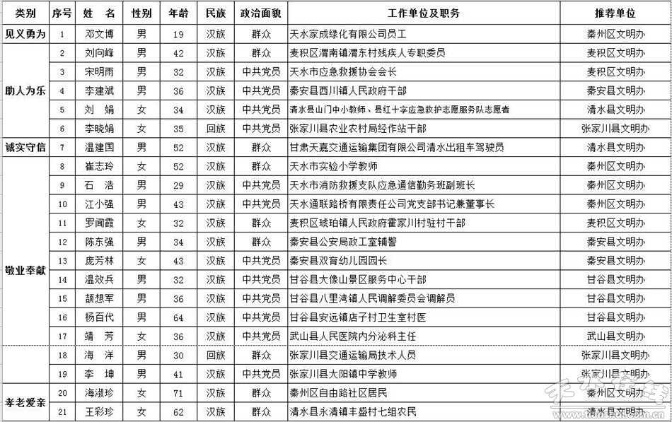 2021年第二季度“天水好人”名单