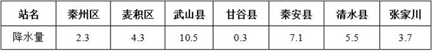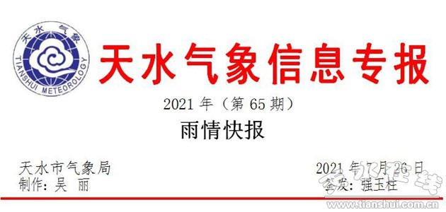 【摘要】受冷空气东移影响,7月25日下午至夜间全市出现区域性降水天气,午后部分乡镇有强对流天气,并伴有雷电,其中有11个站次出现短时强降水,最大小时雨强67.5毫米,出现张家川川王镇铁洼。西部雨量以小到中雨为主,中东部为中到大雨,全市共有6个站点出现暴雨,最大累积雨量出现在张家川县川王镇铁洼村,为72.4毫米。