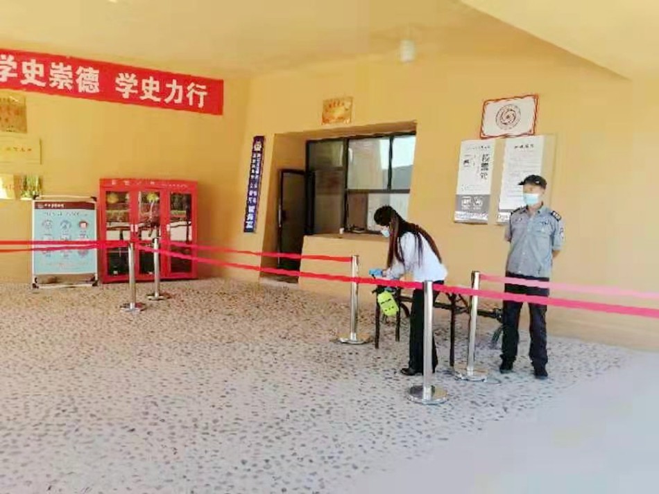 (大地湾博物馆严格落实定时消杀等防疫措施)