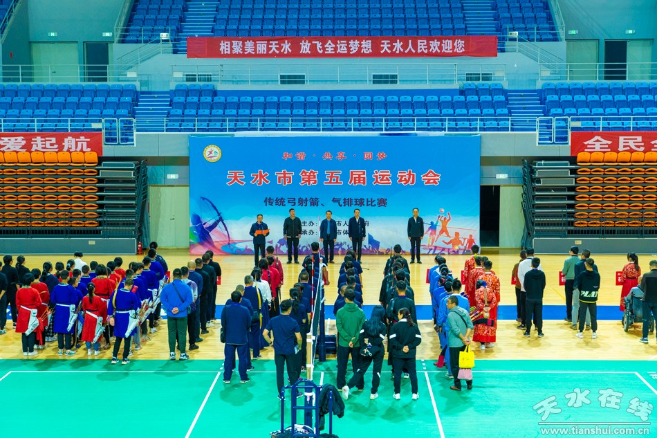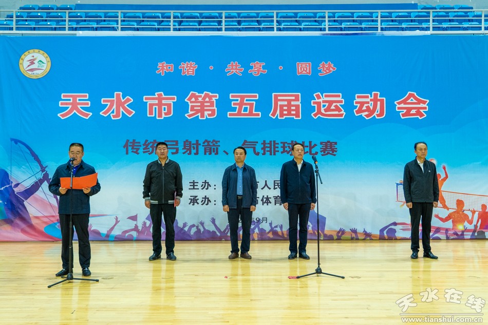 9月19日,天水市第五届运动会传统弓射箭、气排球比赛在天水市体育中心开赛。市体育局党组书记、局长安平原同志宣布比赛开始。市体育局全体干部职工以及来自我市参加传统弓射箭比赛、气排球比赛的运动员、领队、教练员、裁判员共200余人参加了开赛仪式。