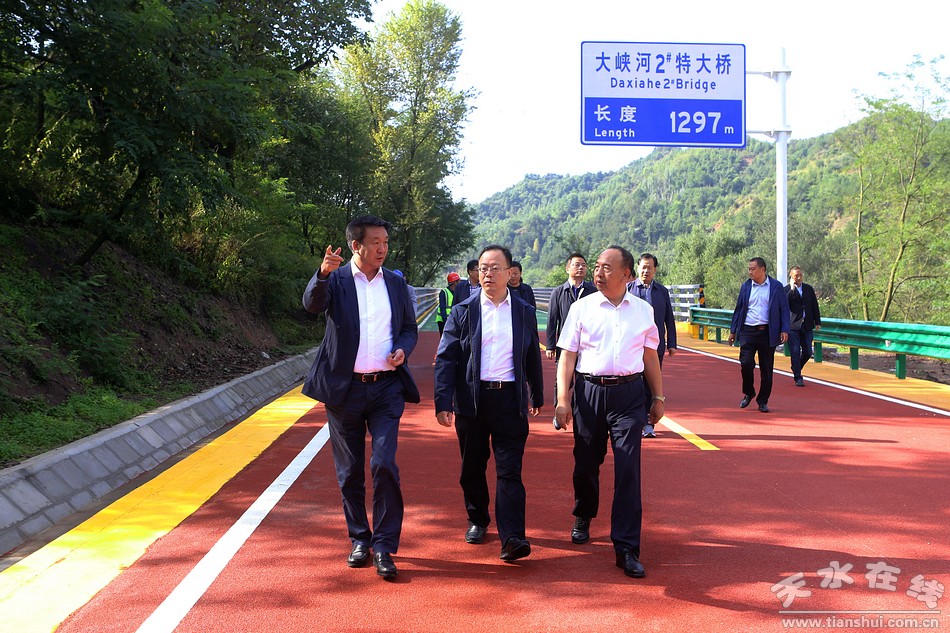 贾义翔、张栋梁一行沿麦积山景区旅游公路全线进行实地察看,详细了解了项目规划设计、工程建设实施、正式竣工通行等情况。他强调,麦积山景区旅游公路建成运行,将实现高等级公路贯通重点景区,对改善提升景区道路通行条件,推动全市旅游产业发展、推进乡村振兴具有深远意义。各相关部门要树牢大局意识,把麦积山景区旅游公路高效利用,与巩固拓展脱贫攻坚成果、全面实施乡村振兴战略相结合,与创建全国文明城市相结合,以交通路网的日益完善有效提升天水整体形象、增强群众获得感幸福感。要加强交通设施的管理和维护,定期排查道路安全隐患,深入开展交通普法宣传活动,及时纠正和查处侵占公路、损害公路设施及影响行车畅通安全的行为。