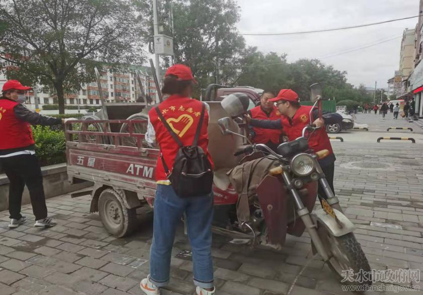 志愿者们头戴小红帽,身穿红马甲,对“包街”区域内的环境卫生、道路状况、乱停乱放、绿化美化等方面进行清理整治和疏导协调。对车主乱停车行为,上前积极劝导停放到指定停车位;面对商户占道经营,大家细心宣传创城工作的重要性,帮助商户清理占道区域;发现沿街脏乱现象,大家手持抹布、喷壶齐上阵,彻底清理卫生死角;针对不文明养犬、随地吐痰、乱扔垃圾、乱丢烟头、横穿马路等群众反映强烈的问题,持续开展文明宣传和劝导;鼓励街区经营户认真履行“门前四包”责任,向沿街商户发放《致秦州、麦积城区沿街商户创建全国文明城市倡议书》,通过现场宣传积极引导沿街商户充分发挥主体责任,主动响应,广泛参与,努力实现自治、自管、自律,使广大市民在共建共享文明城市中培养现代文明意识、营造良好文明风尚。