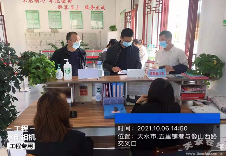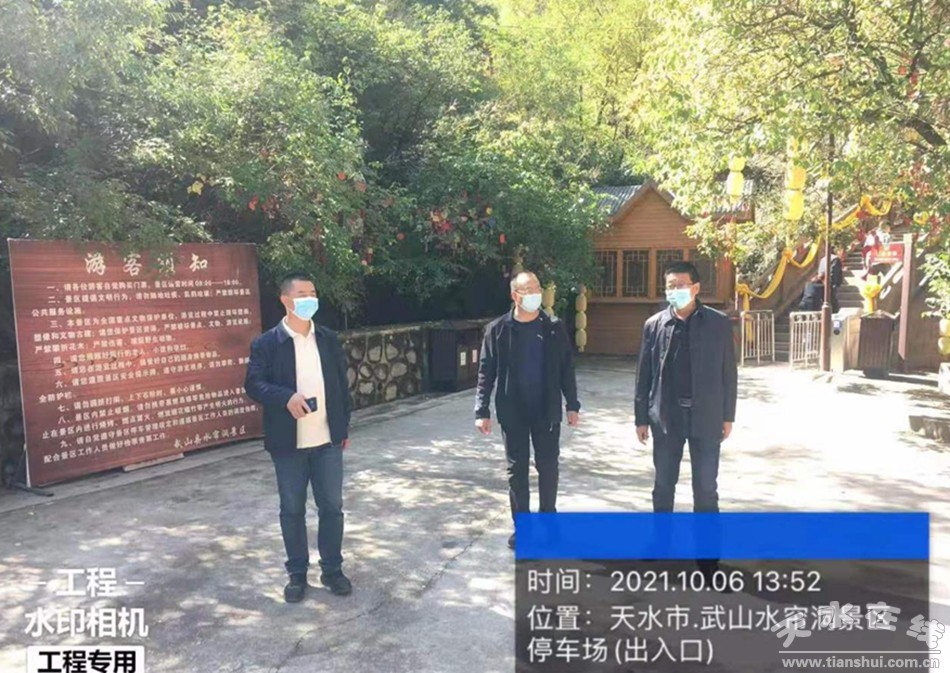 为落实省文旅厅、市文化和旅游局关于2021年国庆节文化和旅游假日市场工作电视电话会议精神,天水市文化市场综合行政执法队抽调精干力量,队班子带队,组成国庆节假日文旅市场暗访组,对国庆节期间文旅市场安全生产、防汛减灾、疫情防控、市场秩序等工作进行了暗访,全力保障国庆节假日文旅市场安全、有序运行。