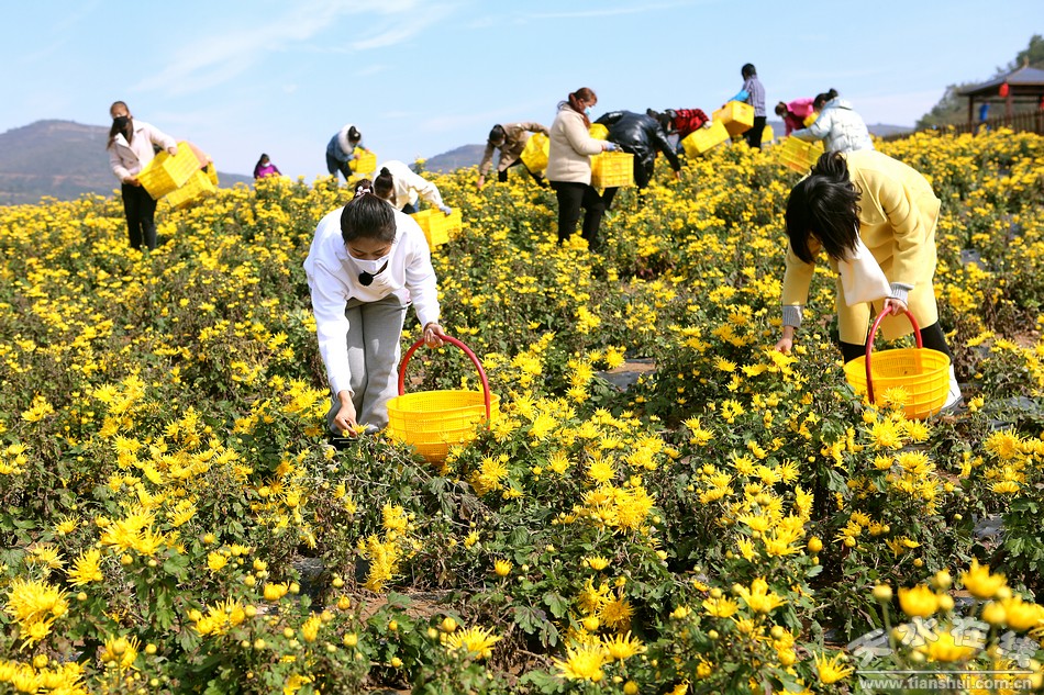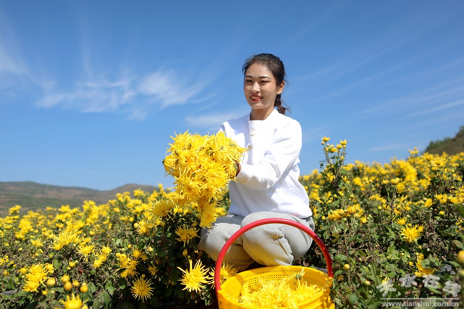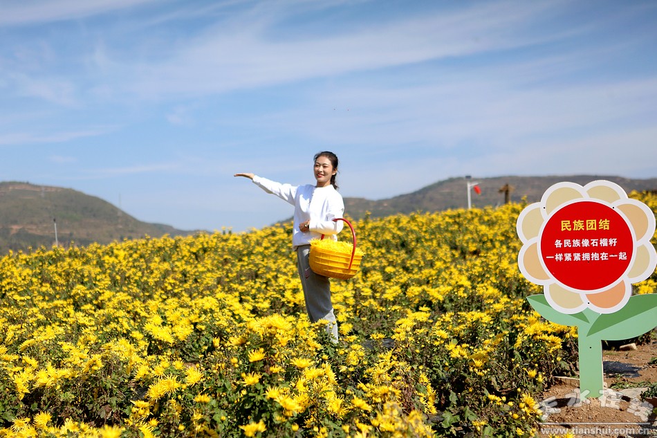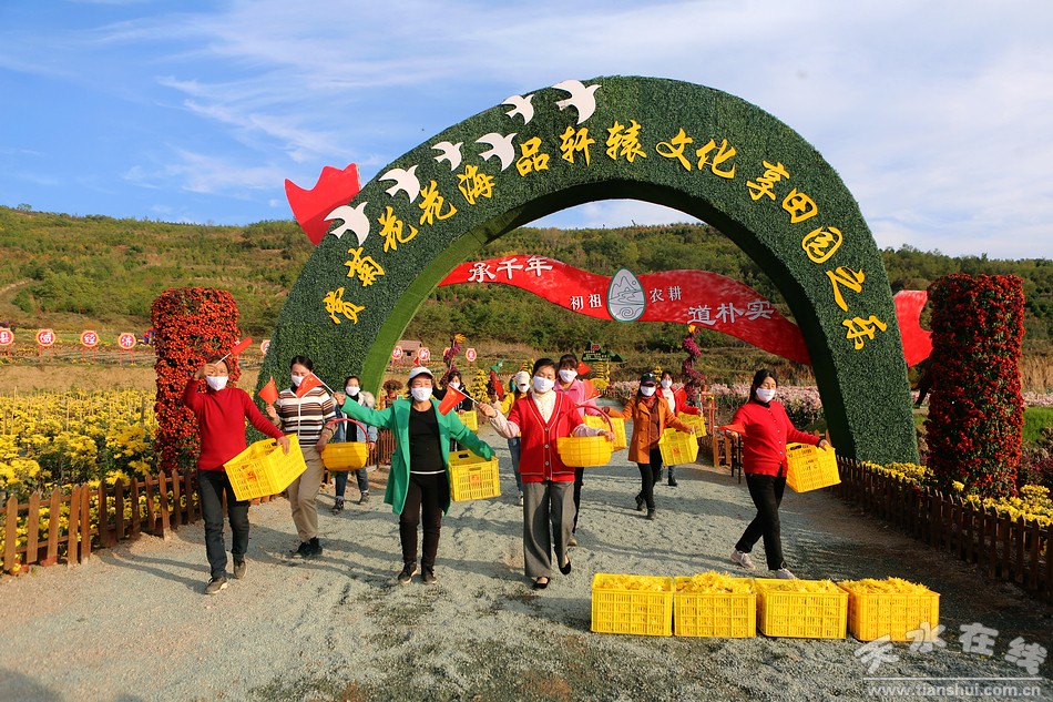 (清水县文旅农康融合发展示范基地的金丝皇菊开始采收)