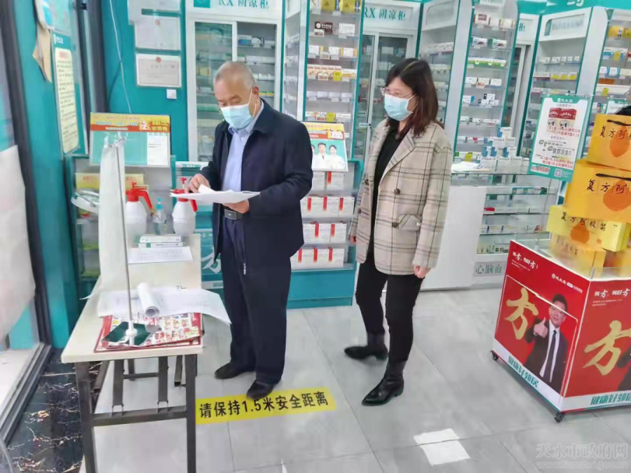 10月20日,天水市市场监管局召开新冠疫情防控领导小组(扩大)会议后,全市市场监管系统紧急行动,全面督查零售药店疫情防控责任落实情况,落细落实零售药店疫情防控措施。