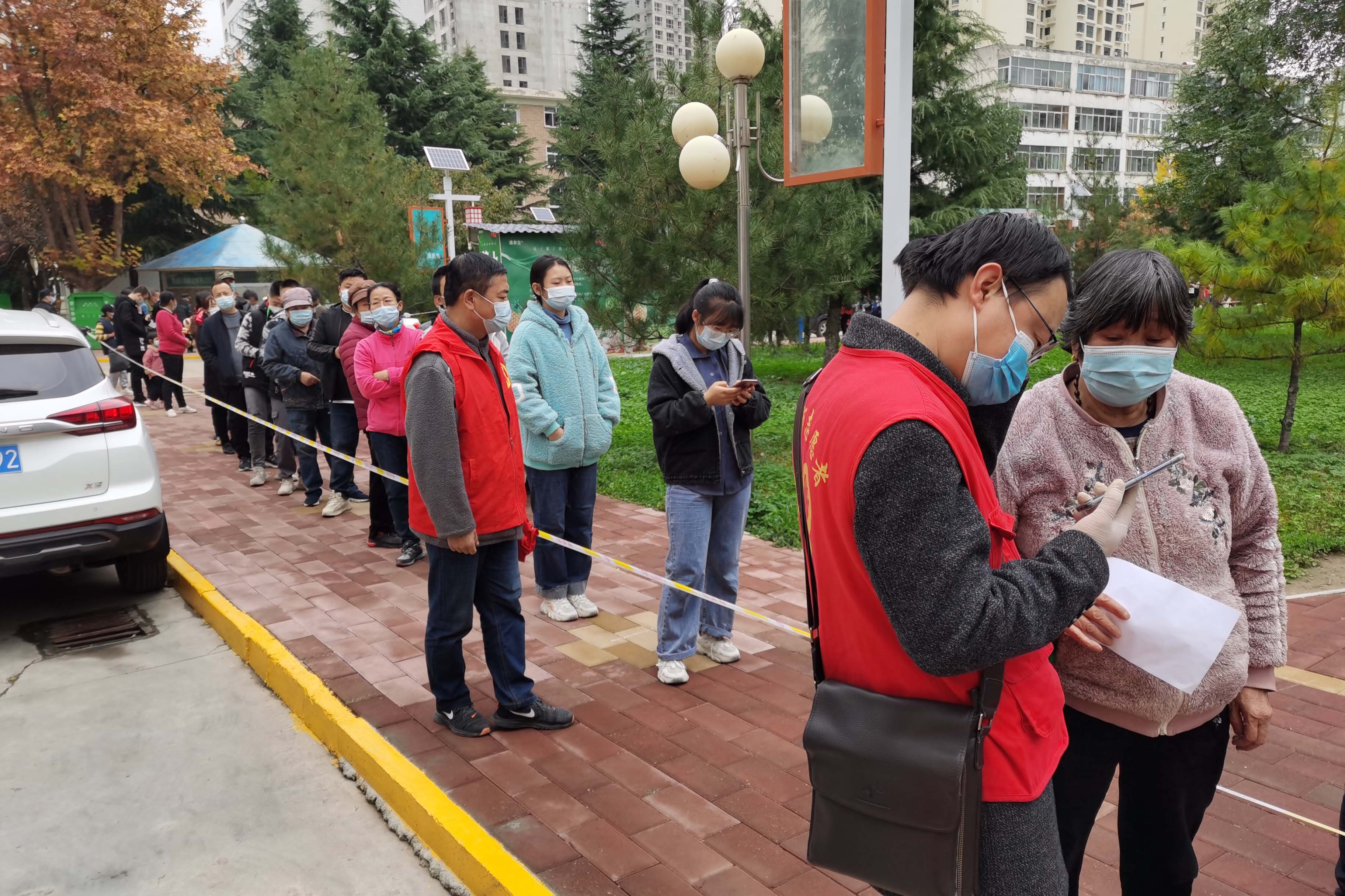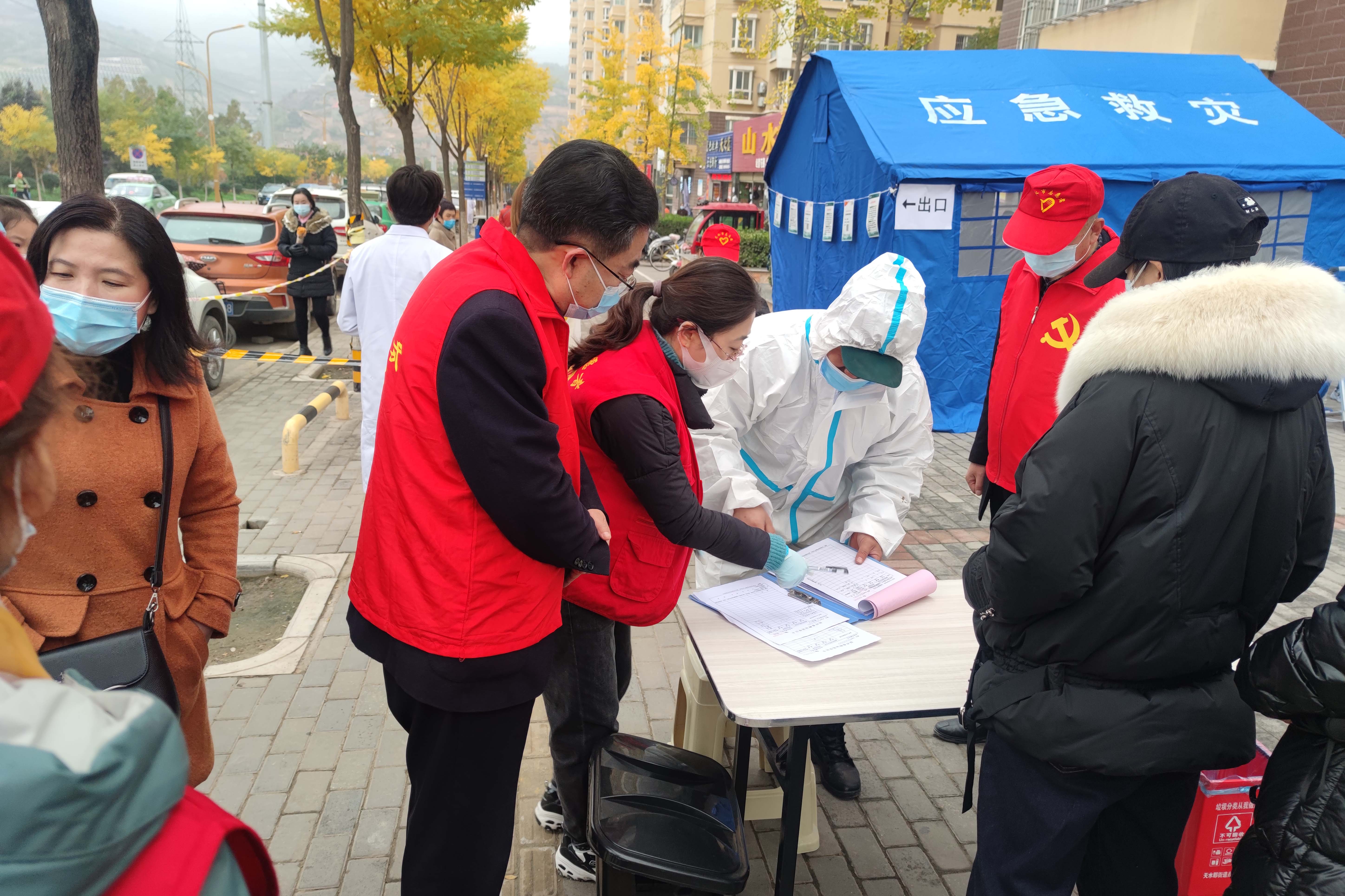 西十里和藉河南路社区住户多、人员密集,近两日来做核酸检测的市民人数较多,刚上岗的志愿者们在社区工作者和现场医护人员的指导下,很快进入工作状态。“请出示一下您的健康码。”“好的,您可以过去检测了。”“稍等一下,您距离不要靠这么近。”志愿者们,在通道上牢牢把住安全守护的关卡,仔细确认市民的健康码,为市民宣传防控知识,有序放行市民,现场秩序井然。