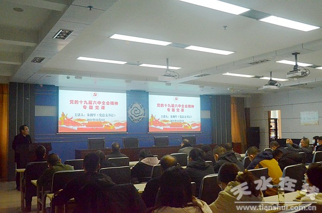 12月3日,天水市气象局召开全体党员干部职工大会,专题学习宣传贯彻党的十九届六中全会精神。局党组书记、党总支书记朱拥军作学习辅导。