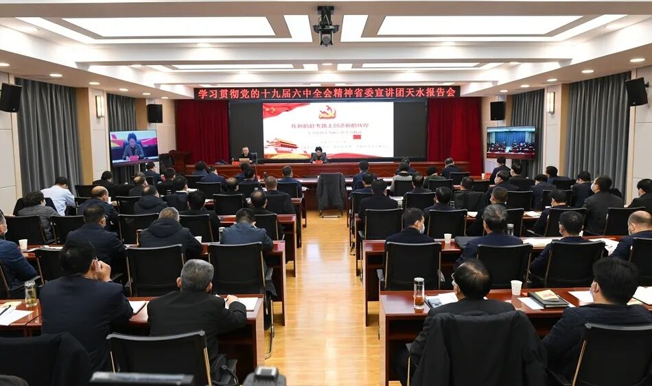 天水日报讯【新天水·天水日报记者马放】根据省委统一安排,12月6日,学习贯彻党的十九届六中全会精神省委宣讲团在我市举行报告会。省委宣讲团成员、甘肃政法大学教授马进作宣讲报告。市委书记张永霞主持报告会并讲话。