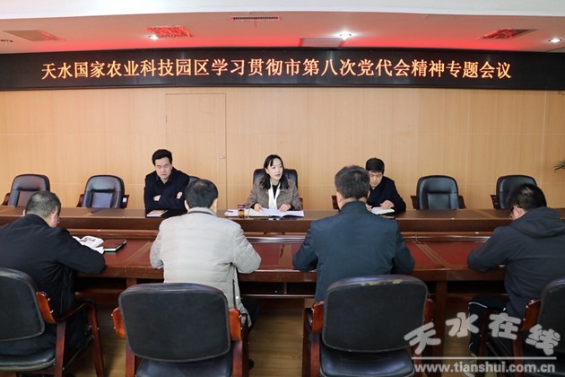 12月13日上午,天水国家农业科技园区管委会召开党工委扩大会议,迅速传达学习中国共产党天水市第八次代表大会会议精神,并安排部署学习宣传贯彻工作。园区管委会全体干部职工参加会议。
