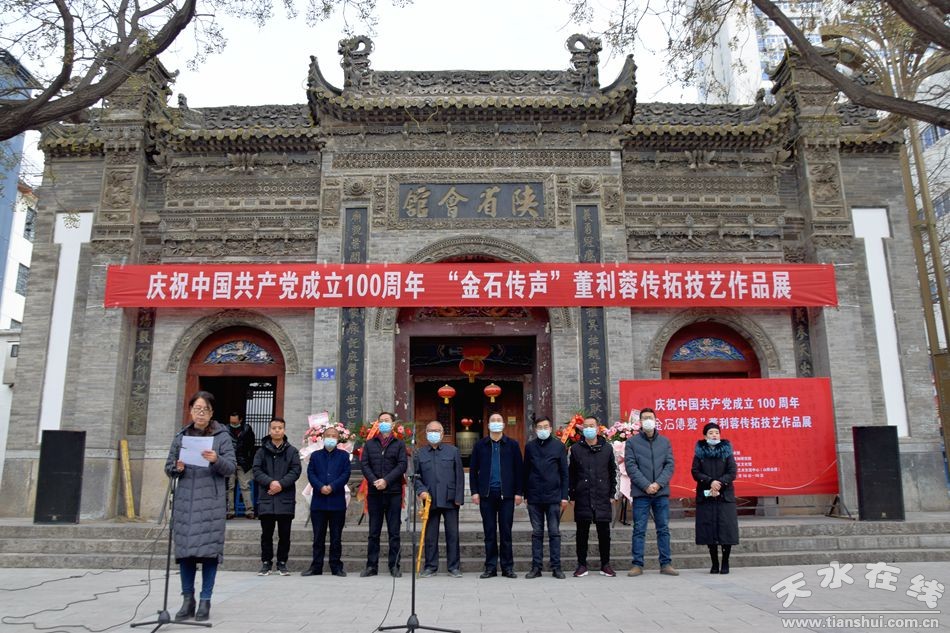 2021年12月16日,“金石传声”董利蓉传拓技艺作品展在秦州区陕西会馆隆重开幕。来自洛阳、兰州等地传拓领域的专家及天水的爱好者们共100 多人参加了开幕式。