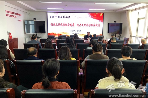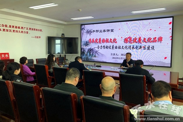 一年之计在于春,一日之计在于晨。为进一步提升干部职工整体素质和业务能力,推进2022年各项工作高质量发展,从春节后第一个工作日起,市文化和旅游局在局机关启动“文旅干部业务讲堂”活动。2月7日,开年第一课由局党组成员、副局长郭靖讲授《推进文旅农康融合发展 放大文化旅游综合效益》,全面阐述我市文旅农康融合发展试验区建设的发展目标、重点任务、保障措施;局党组成员、副局长刘宗林以《传承伏羲始祖文化 擦亮伏羲文化品牌》为题,详细解读伏羲始祖文化传承创新区建设背景、工作进展及实施方案。