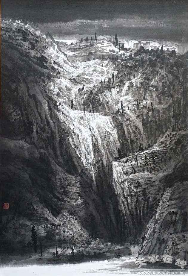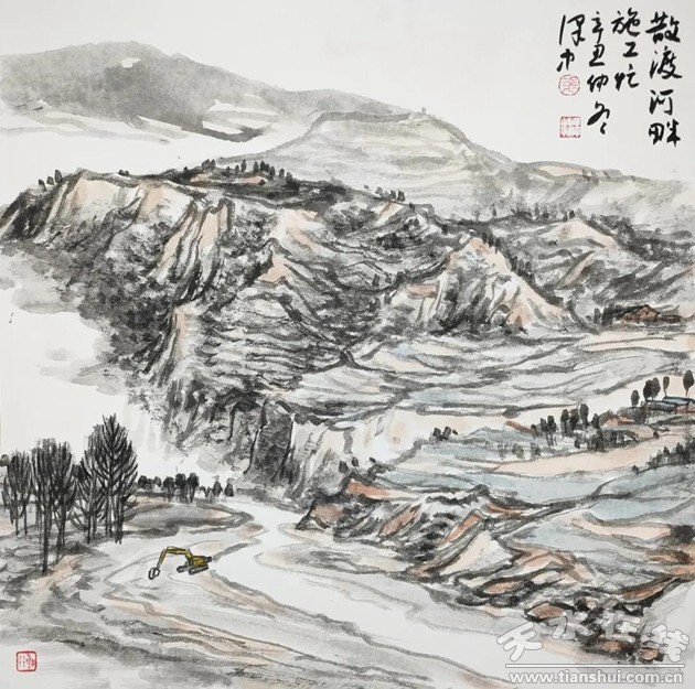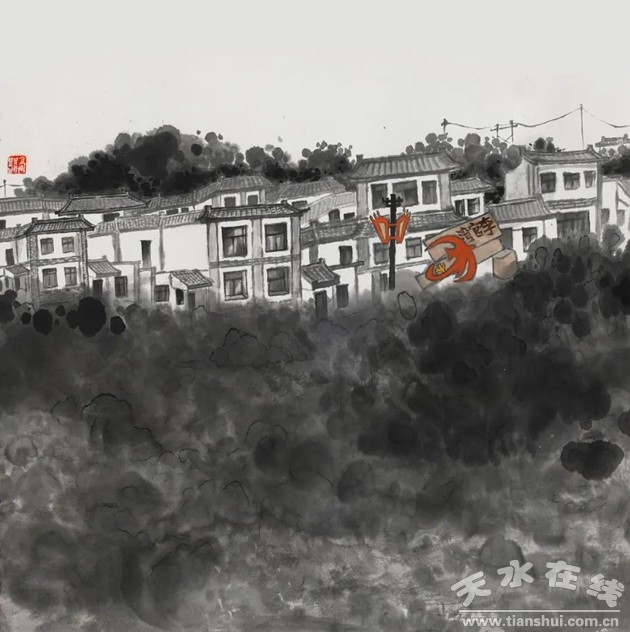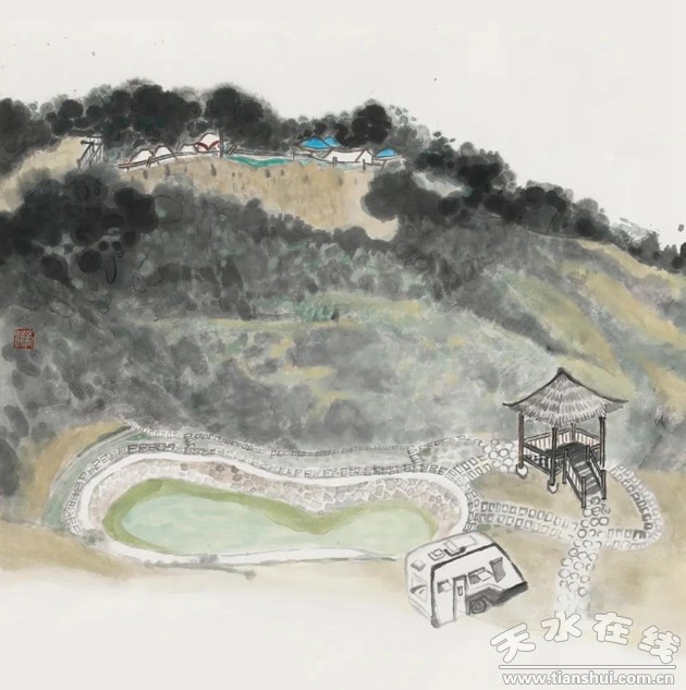 刘洲《甘谷安远镇新貌》中国画