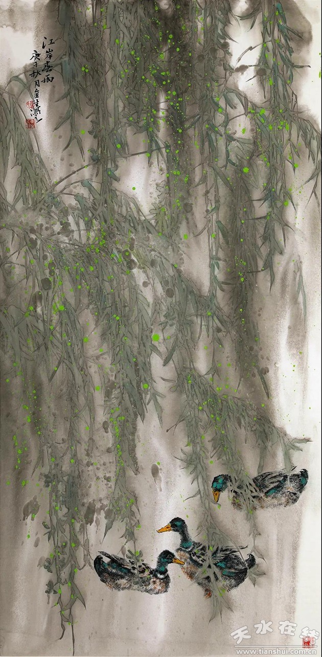 高全生《江岸春雨》中国画