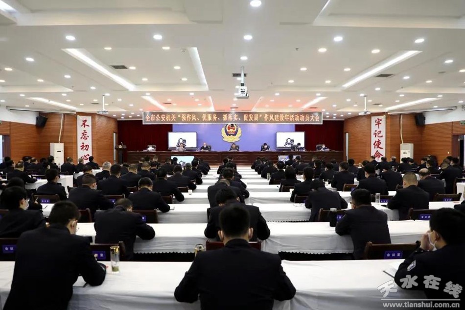会议指出,市委部署在全市开展“强作风、优服务、抓落实、促发展”作风建设年活动,充分表明了市委市政府加强和改进作风建设,推动党员干部能力素质和服务意识全面提升,各级各部门的执行力、贯彻力、落实力全面增强,发展环境全面优化,群众和企业满意度全面提升,年度目标任务全面落实的鲜明态度和坚定决心。公安机关的性质特点及担负的职责使命,决定了我们必须始终保持昂扬的斗志和冲天的干劲,坚持高标准、严要求,做到想在先、干在先。市县两级公安机关一定要站在忠诚捍卫“两个确立”、坚决做到“两个维护”的政治高度,充分认识开展作风建设年活动的重要意义,始终把开展作风建设年活动作为一项严肃的政治任务,以作风建设永远在路上的执着,紧紧围绕“强作风、优服务、抓落实、促发展”主题,对有碍改革创新、侵害群众利益、损害公安形象的人和事进行一次全面深入的大排查、大整顿,打好全市公安队伍作风建设组合拳,扫除作风顽疾,破除发展障碍,提高服务效能,回应群众关切,以务实作风和过硬本领为天水经济社会高质量发展创造安全稳定的社会环境、公平正义的法治环境和优质高效的服务环境。
