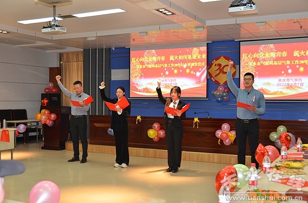 3月7日,天水市气象局举办主题为“回忆如歌岁月 再聚首开启气象新征程”的“基层气象工作30年纪念章”集中颁发仪式暨3月份主题党日活动,纪念章获得者和全体在职职工参加了仪式。