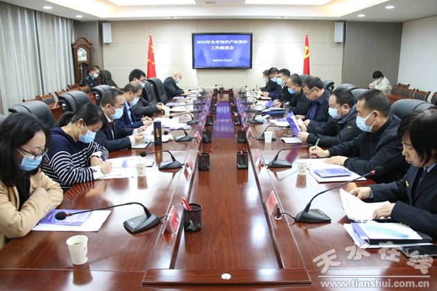 为切实提升我市知识产权保护工作整体水平,深入推进2022年知识产权保护重点工作,促进经济社会高质量发展,4月24日,天水市知识产权战略实施工作领导小组办公室召开2022年全市知识产权保护工作座谈会,市市场监管局副局长、市知识产权局局长甘志国在会上讲话。市委宣传部、市中级人民法院、天水海关等相关单位负责人及市市场监管局、市市场监管综合行政执法队相关科室负责人参加座谈。