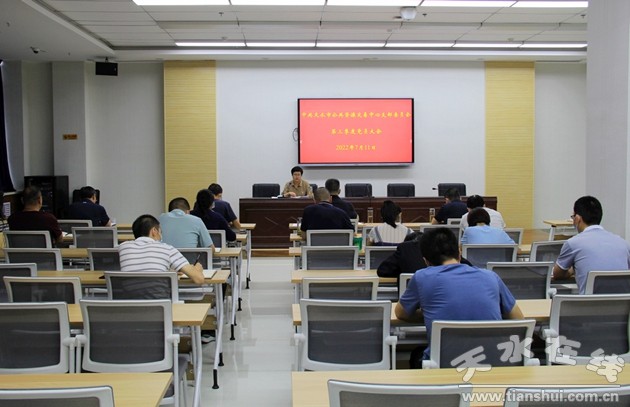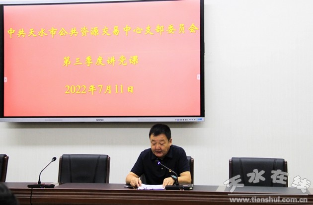 7月11日,天水市公共资源交易中心党支部组织召开第三季度党员大会暨专题党课报告会。会议由中心党支部书记高春霞同志主持。结对共建社区天水郡街道瀛池社区长仪西区部分党员代表应邀参加活动。