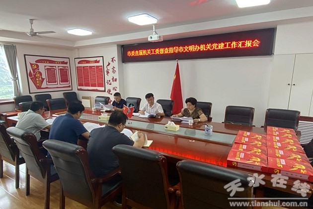 为进一步夯实党建工作基础,提升党建工作水平,8月15日下午,天水市委直属机关工委副书记吴和平一行对市文明办上半年机关党建重点任务完成情况进行督查指导。