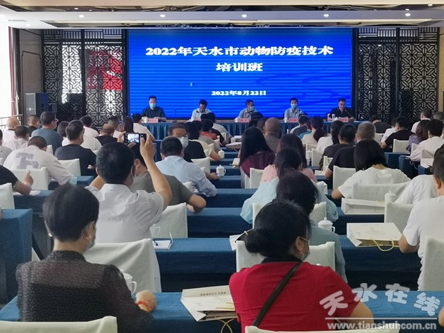 为进一步提升全市动物防疫专业化水平,强化动物防疫队伍工作能力,做好、做细、做精、做实秋季动物防疫工作,天水市畜牧兽医局于近日举办了2022年全市动物防疫技术培训班。参加本期培训班的有各县区畜牧兽医事务服务中心主任及技术骨干、动物疫病预防控制中心主任、疫情测报人员、兽医实验室检验人员,乡镇农业综合服务中心动物防疫技术骨干,以及市动物疫病预防控制中心、市动物卫生技术工作站技术骨干等100余人。中科院兰州兽医研究所研究员殷宏、省动物疫病预防控制中心主任、研究员卢旺银受邀参加,天水市畜牧兽医局局长梅凯吉出席开班仪式并致辞。