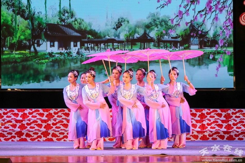 访谈结束后,演出了古典舞《朗月行》、诗词联诵《月下独酌》《水调歌头·中秋》《春江花月夜》《秦州杂诗其七、十二、月夜忆舍弟》、古琴吟唱《忆秦娥》、诗歌朗诵《南郭寺》《登麦积山石窟》、二胡演奏《良宵》、歌曲演唱《天水的月亮》《东方微笑》等十余个精彩纷呈的节目。演出现场穿插茶艺、香道、插花等表演,古韵雅趣,动静结合,相得益彰,传统文化艺术气息浓郁。其中,我市著名音乐家,年近耄耋的李祖武先生作曲、作词并演唱的歌曲《天水的月亮》,声音洪亮,中气十足,赢得了现场观众的阵阵掌声。演员们精湛的表演、专业的舞台功底,敬业的精神为现场观众献上了一场诗意盎然的文化盛宴。