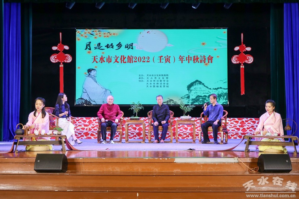 露从今夜白,月是故乡明。9月7日晚,在中秋节来临之际,为认真贯彻落实省第十四次党代会和市第八次党代会精神,喜迎党的二十大胜利召开,进一步打造名城天水旅游文化新形象,传承天水深厚的历史文化底蕴和源远流长的诗歌文化,纪念诗圣杜甫流寓秦州1263年,由天水市文化和旅游局主办,天水市文化馆承办,天水诗歌协会、天水诗词学会、天水国馥茗茶城协办的“月是故乡明”2022(壬寅)年中秋诗会在天水纪信祠举办。