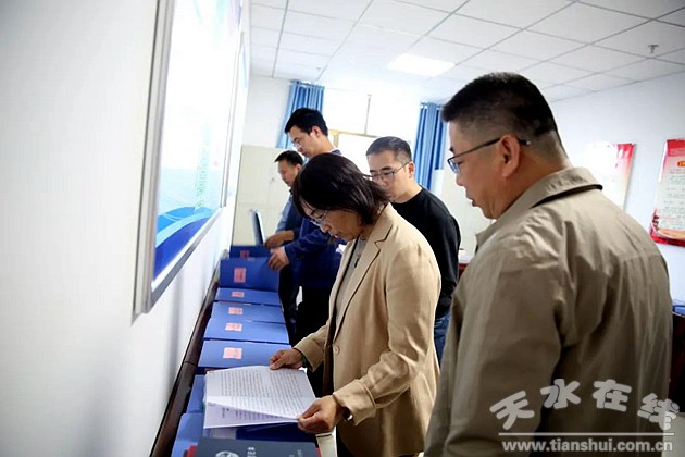 市测评验收组实地查看了市检察院12309检察服务中心、荣誉室、文化长廊、道德讲堂、阅览室等场所;详细查阅了省级文明单位创建工作相关资料,并观看了天水检察宣传片《司法为民践初心 不负韶华担使命》。