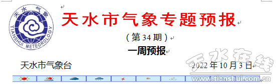 过去一周,全市以多云天气为主,其中2日凌晨开始我市出现大范围降水天气,武山县、秦州区南部、麦积区中东部、清水县及张家川县中到大雨,清水县局部乡镇暴雨。