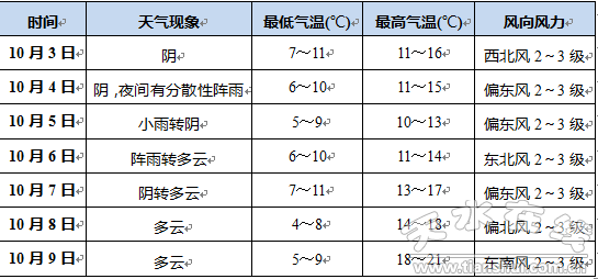 预计4日夜间我市有分散性阵雨;5日白天小雨;6日白天阴有阵雨。受冷空气影响,气温将下降4~7℃,提醒广大公众朋友及时关注天气预报,适时增添衣物,谨防感冒。