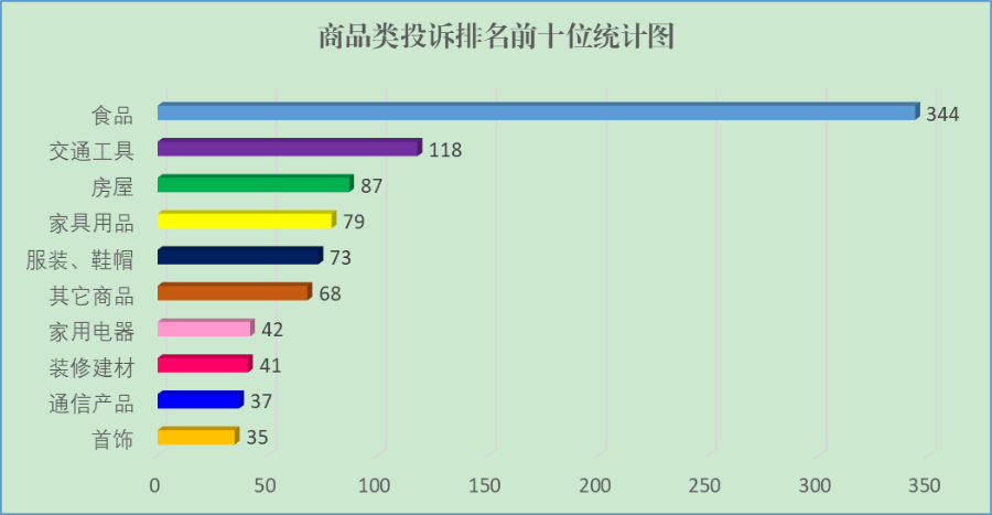 商品类投诉1213件,占投诉总量的56.66%。排名前十位的依次是: