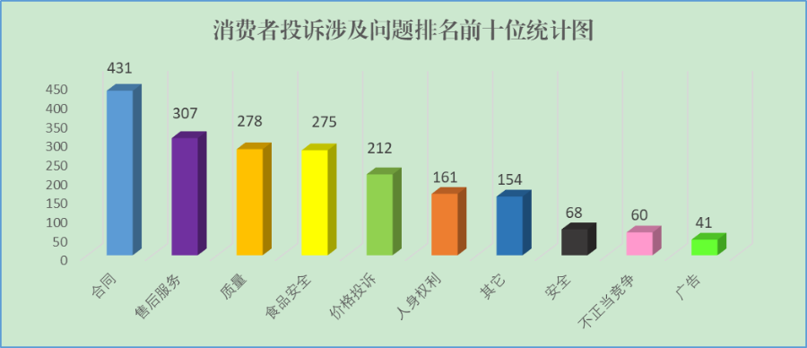 服务类投诉928件,占投诉总量的43.34%。排名前十位的依次是: