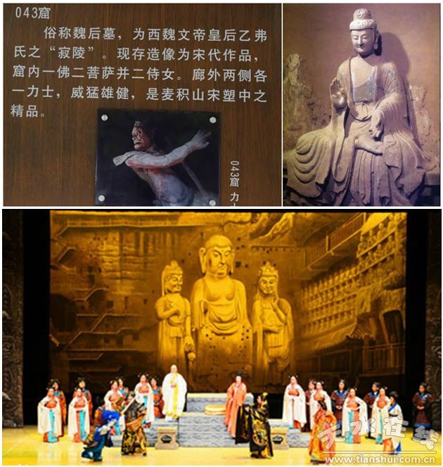 性情温顺、为人宽厚的西魏皇后乙弗氏因皇帝元宝炬惧怕柔然侵犯,在娶了柔然公主后被废黜,乙弗氏被迫在麦积山出家,但最终为家国安定而被逼自尽,其子为纪念她深明大义、忠贞不屈的品格,为她在麦积山开凿了一个流传千古的石窟墓(麦积山第43窟),也是天水大型秦腔话剧《麦积圣歌》的故事原型。