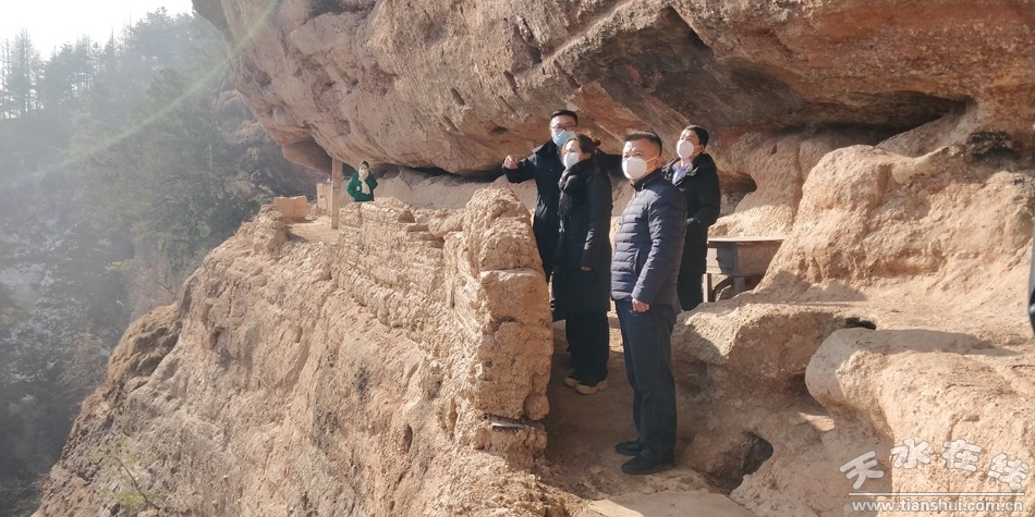 1月9日,天水市文化和旅游局副局长、市文物局局长刘宗林带领相关科室负责人,对麦积山大景区管委会2022年度文物安全目标责任完成情况进行考核,同时对罗汉崖摩崖造像等文物保护单位进行了安全大检查,就做好麦积山大景区的文物保护、安全管理、能力提升等工作提出了意见建议。麦积山大景区管委会纪工委书记王海明等管委会相关科室负责人陪同。