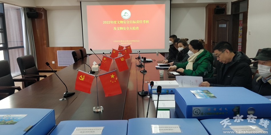 考核会上,麦积山大景区管委会对2022年度文物安全工作进行了总结汇报,考核组对照与市局签订的《2022年度文物安全目标责任书》以及2022年度甘肃省文物安全检查表8大项目29项指标逐项进行印证材料的检查,肯定了我委2022年度文物保护工作取得的成绩,指出了不足。
