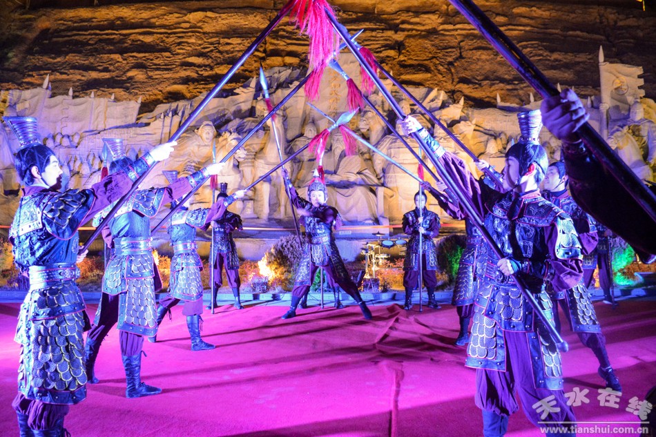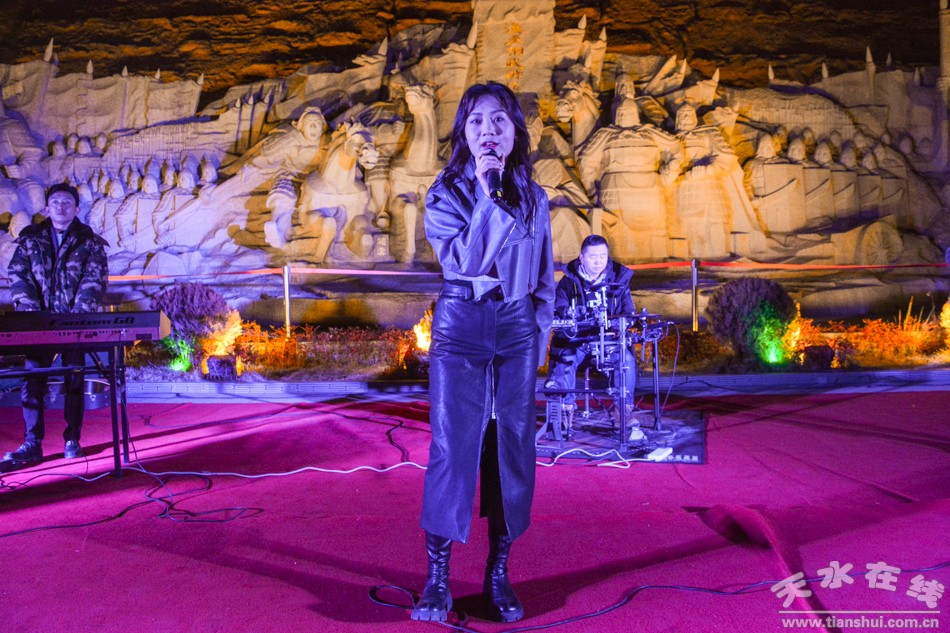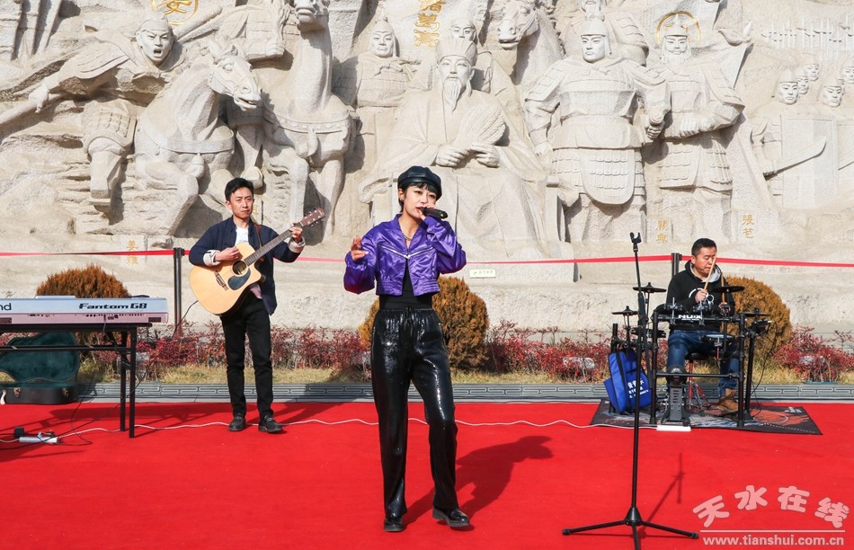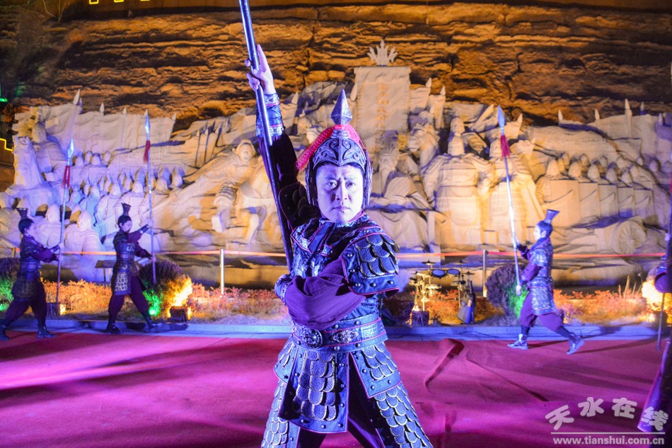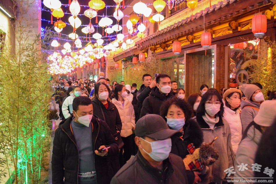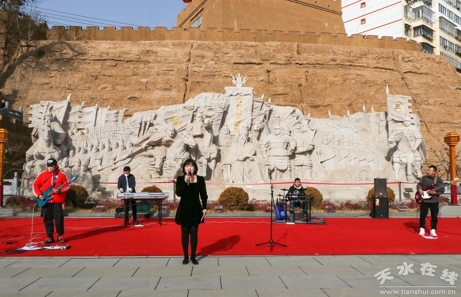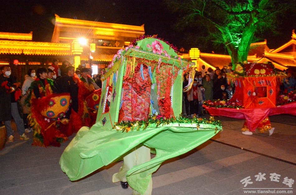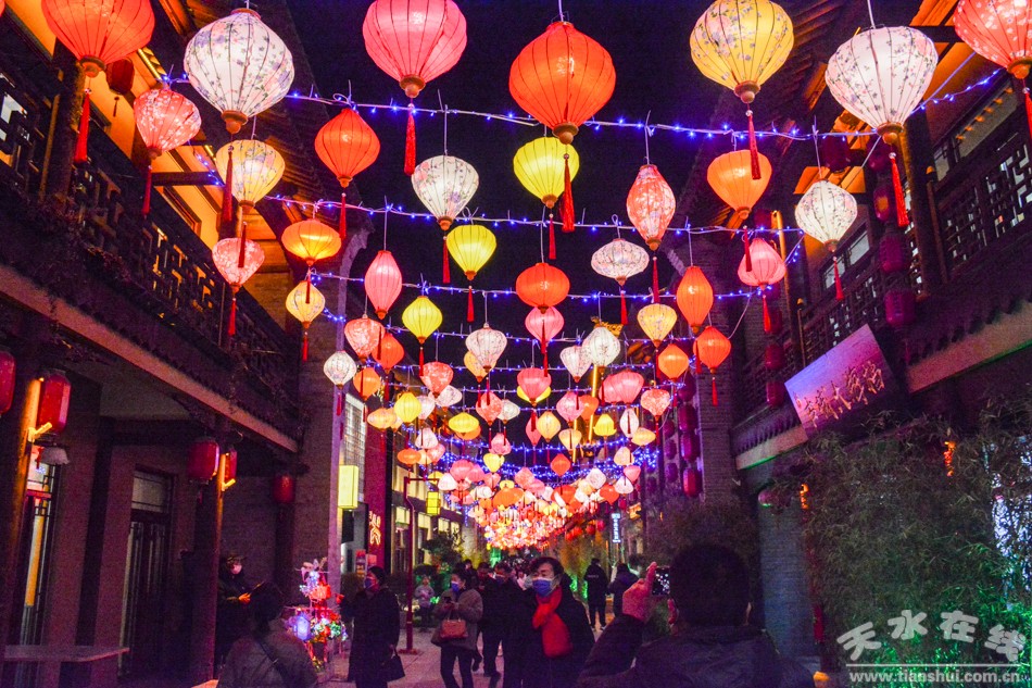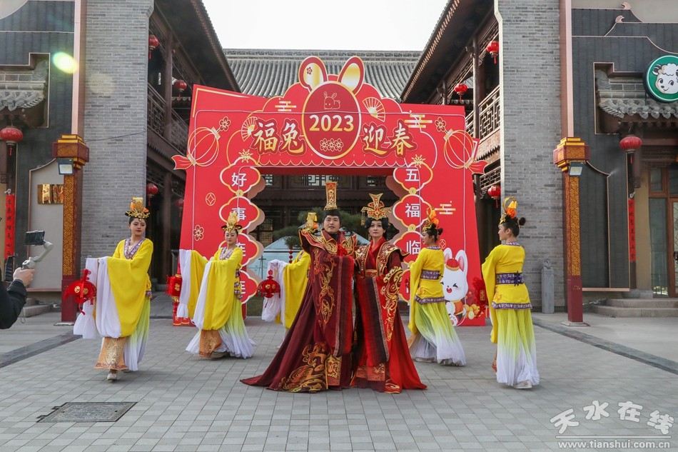 1月25日(大年初四)下午和晚上,天水市歌舞团组织演艺团队到天水西关古城进行多种形式的文艺表演,吸引众多游客观看。演出节目涵盖非遗舞狮、旱船、毛驴秧歌、秦州小曲、祭祀汉服秀、乐舞表演、电声乐队、快闪舞蹈《梦回三国》《秦州夹板》等。