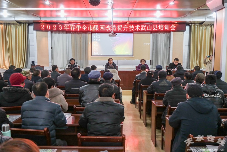2月16日上午,2023年春季全市果园改造提升技术巡回培训会在武山县举办。实施果园改造提升乡镇的分管领导、果农代表、县果业中心技术干部等160多人参加了培训。