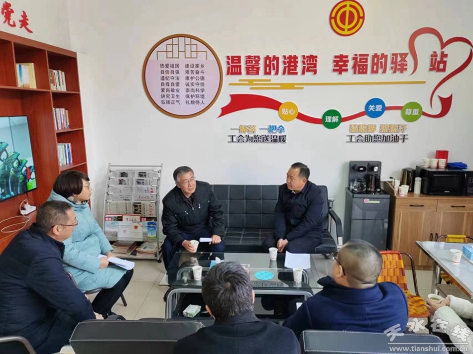 调研组一行实地察看了新就业形态劳动者驿站、户外劳动者驿站建设运行和市职工服务中心标准化建设及赋能增职情况,召开了有关工作汇报会。调研组对天水驿站建设、职工生活品质提升、集体协商指导员队伍建设、职工困难帮扶等工作给予了充分肯定。