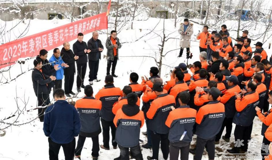 今年以来,天水市围绕深入实施果品产业迭代升级工程,以开局就是决战、起步就是冲刺的干劲,抢抓果树萌芽前的关键时期和近期普降雨雪的有利时机,迅速掀起全市果园改造提升集中培训和春季果园管理热潮,着力夯实果品产业量质齐升根基。